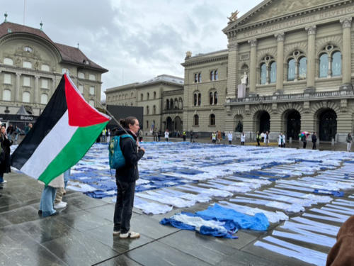 Place Fédérale transformée symboliquement en cimetière (DR).
